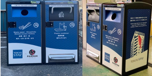 ゴミ箱の正面には、ピクトグラムと多言語表記を活用したデザインを採用し、国内外の観光客にゴミの分別を促進します。また、側面には、東急リゾーツ&ステイ株式会社が取り組む街の環境美化活動を掲示し、人々の行動変容を促す効果が期待されています。