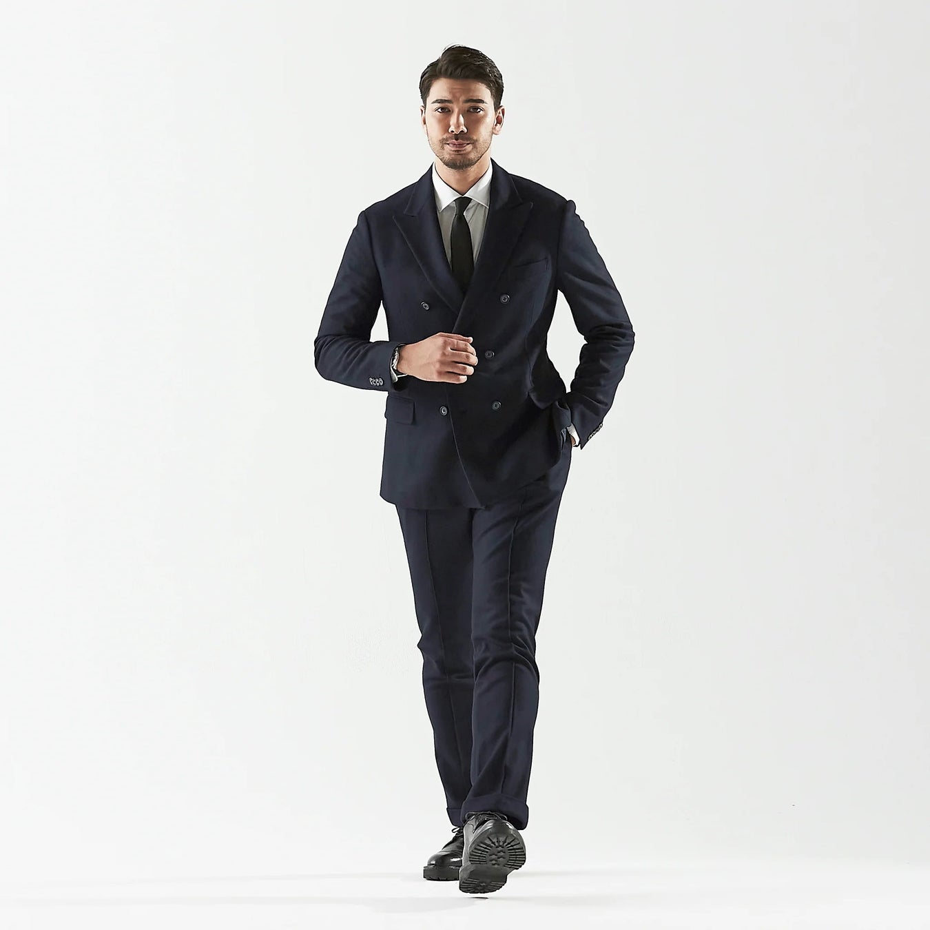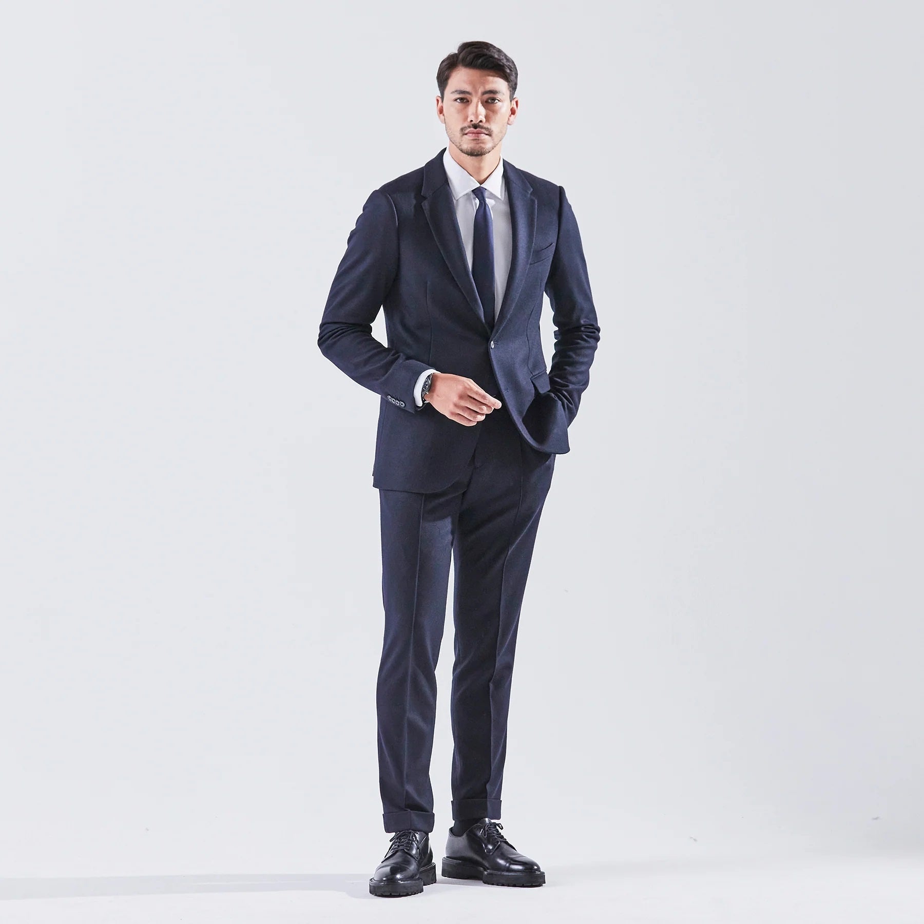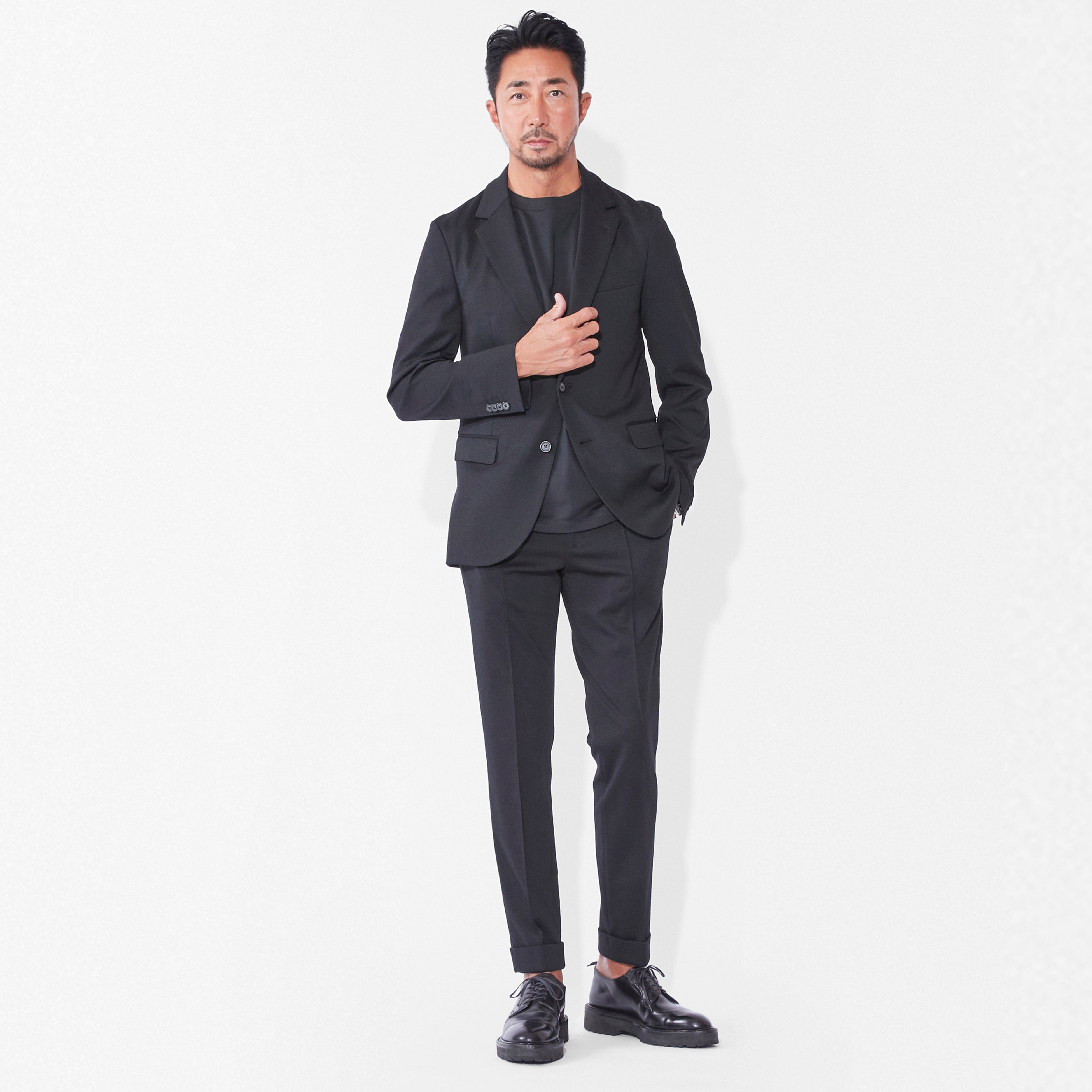 無駄をそぎ落とした洗練されたデザイン性と、見た目の高級感や重厚感からは想像できない“ジャージーならではの伸縮性”が、忙しく活動するビジネスパーソンから支持されています。