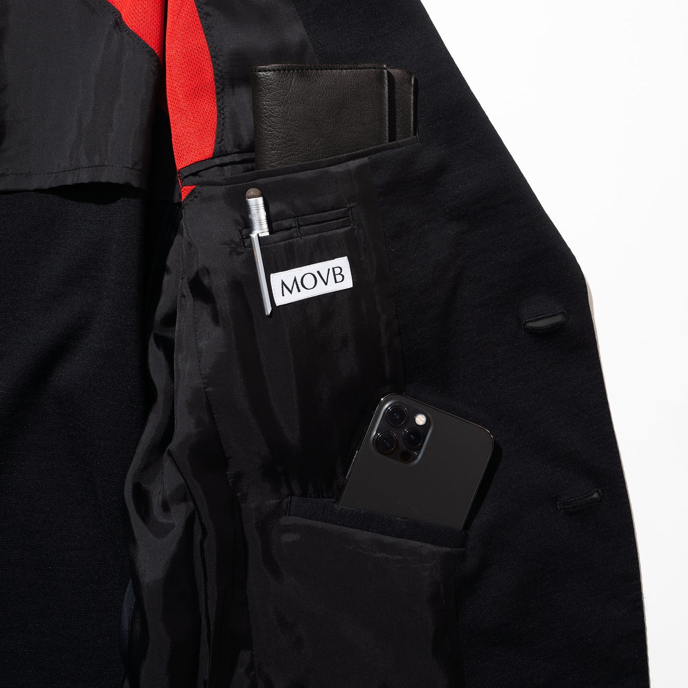 たとえばジャケットには、スマホポケット、名刺ポケット、ウォレット/パスポートポケット、ペン差しなど、必需品を全て収納できるポケットを用意。