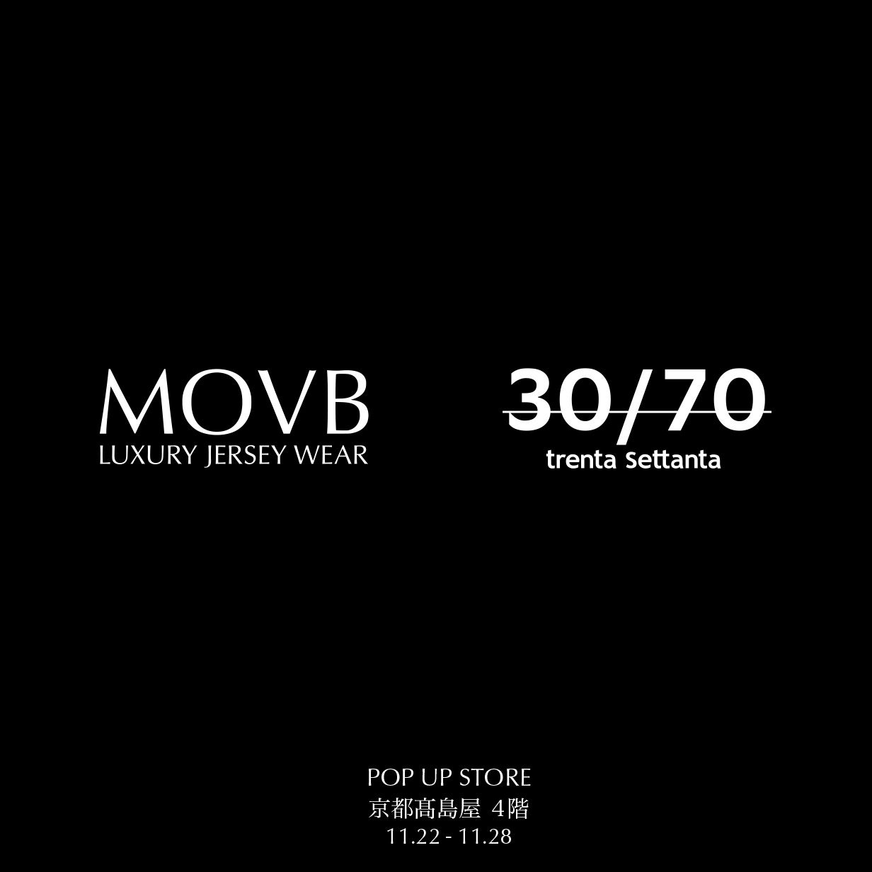 MOVBではこの度、干場義雅氏監修ブランド、30/70との合同ポップアップストアを「京都髙島屋」にて1週間限定で開催いたします。