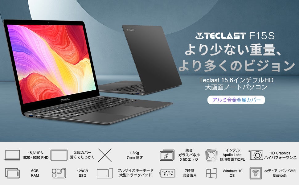 ●TECLAST F15Sパソコンは15.6インチのオールメタルボディがあり、厚さ7mmの狭い側面を備えた適切に設計された2.5D保護パネル、重量はわずか1.8kg、軽量でポータブルです。
