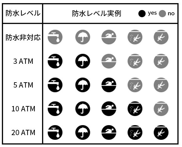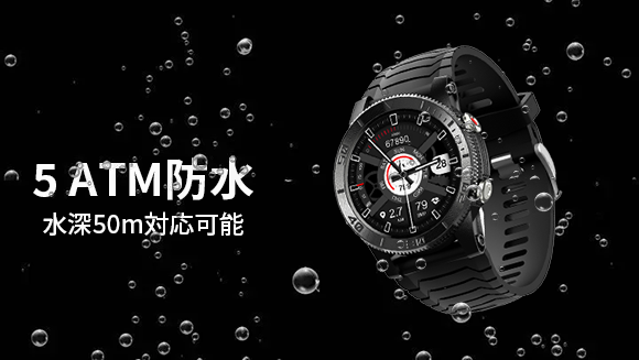 ・5ATM防水仕様。バスタイムだけでなく、水泳・サーフィンでも耐水性バッチリ