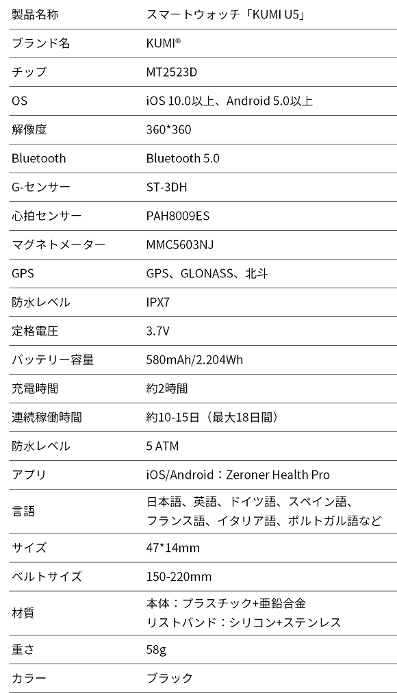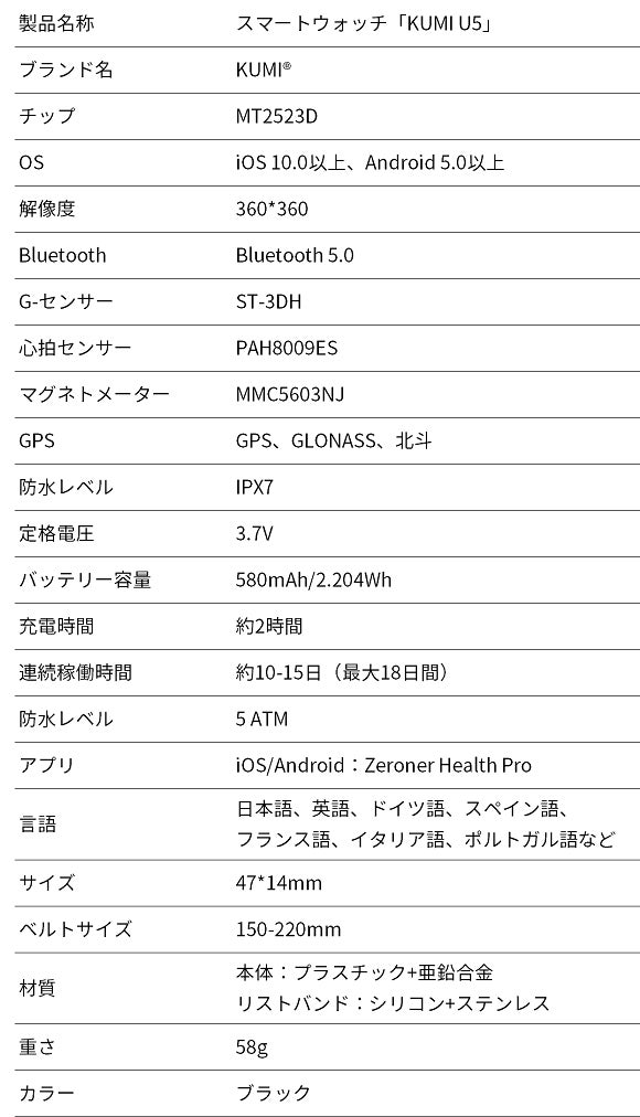 GPS搭載かつ高レベル防水。 実用性&デザイン性を両立したスマートウォッチ「KUMI U5」