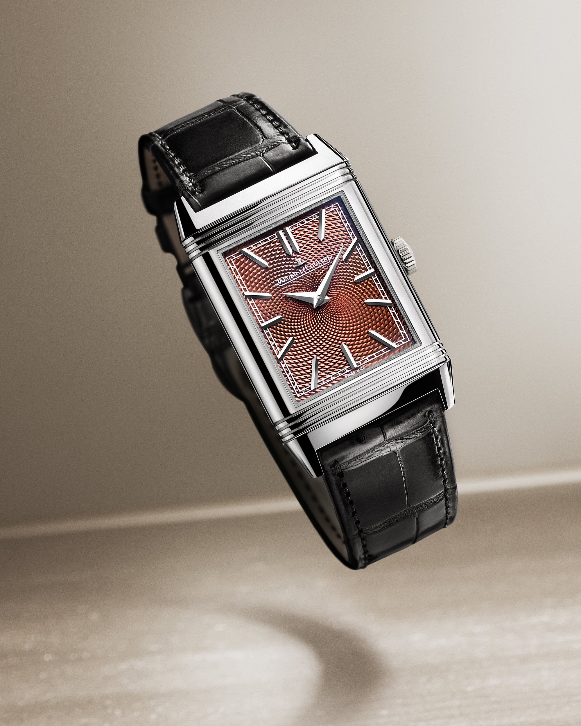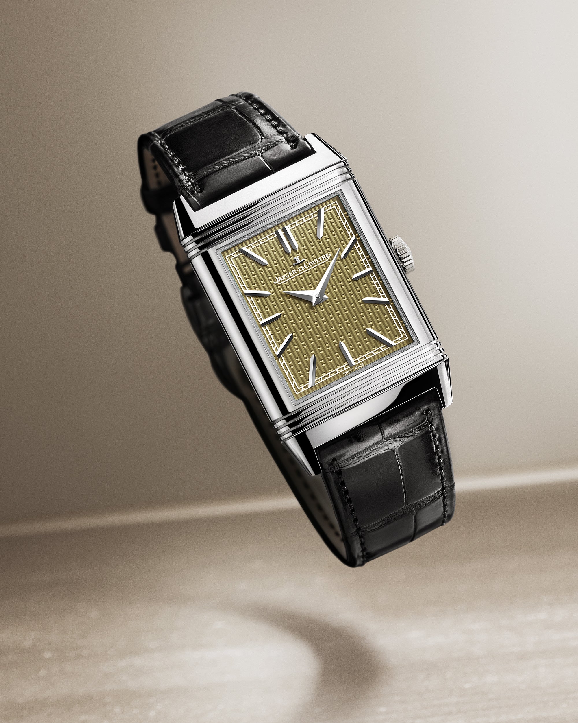 各タイムピースには、18Kホワイトゴールド製フォールディングクラスプ付きブラックアリゲーターレザーストラップ、または18Kホワイトゴールド製「アールデコ」ミラネーゼブレスレットのいずれかを組み合わせることができます。これら4つの限定モデルにはすべて、1991年に初登場した手巻きキャリバー822が搭載され、レベルソを象徴する長方形のケースの形状に忠実に沿うように設計されています。その高さはわずか2.94mmのスリムな設計で、レベルソのケースの薄さと手首への抜群の快適性を実現しています。42時間のパワーリザーブと3Hzの振動数を備えたジャガー・ルクルトのキャリバー822は、この美しい芸術品を腕に纏うための信頼性の高い精密なムーブメントです。