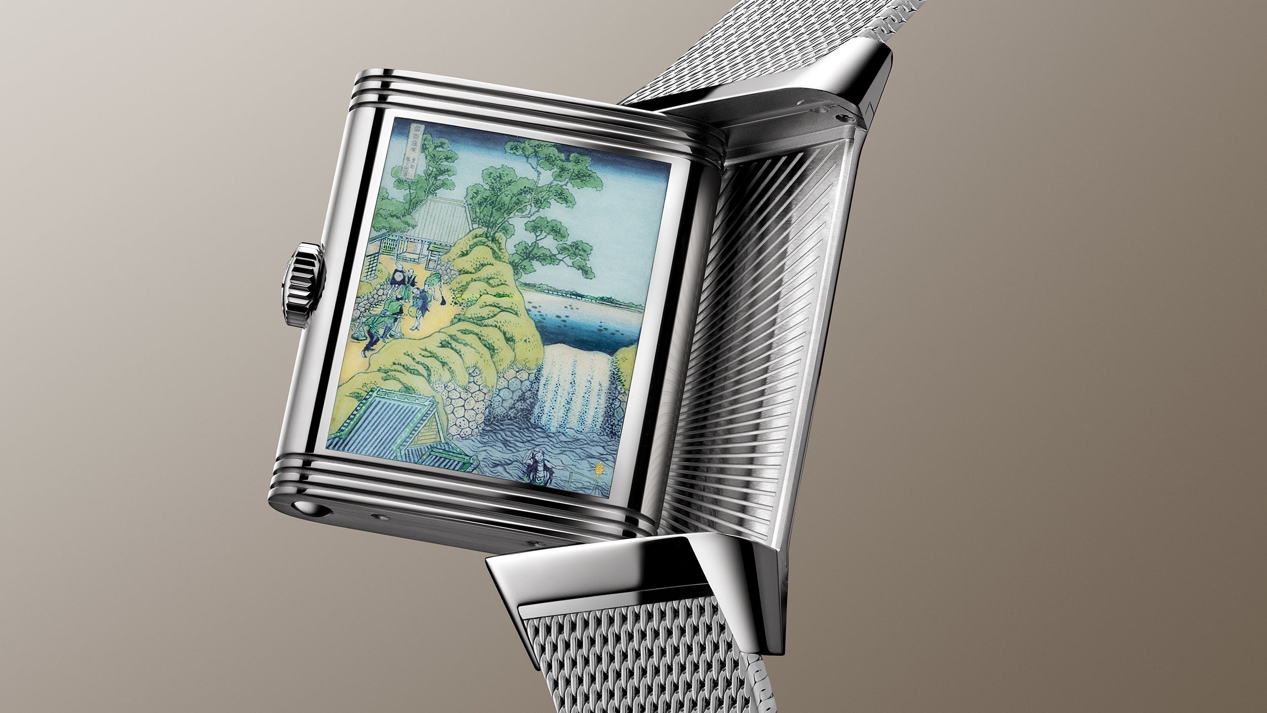 2022年:レベルソ・トリビュート・エナメル限定モデルで、もう1枚の『諸国瀧巡り』シリーズ、『木曾路ノ奥阿弥陀ケ滝』を再現