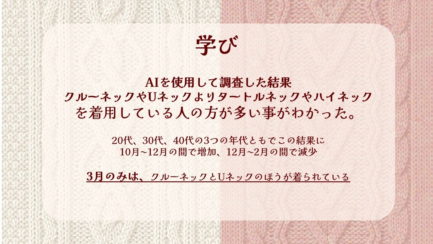 【大阪文化服装学院】ハイネック派 or クルーネック派? 冬のスタイリングをデータで振り返る - 株式会社ニューロープとのデータ分析コラボ企画