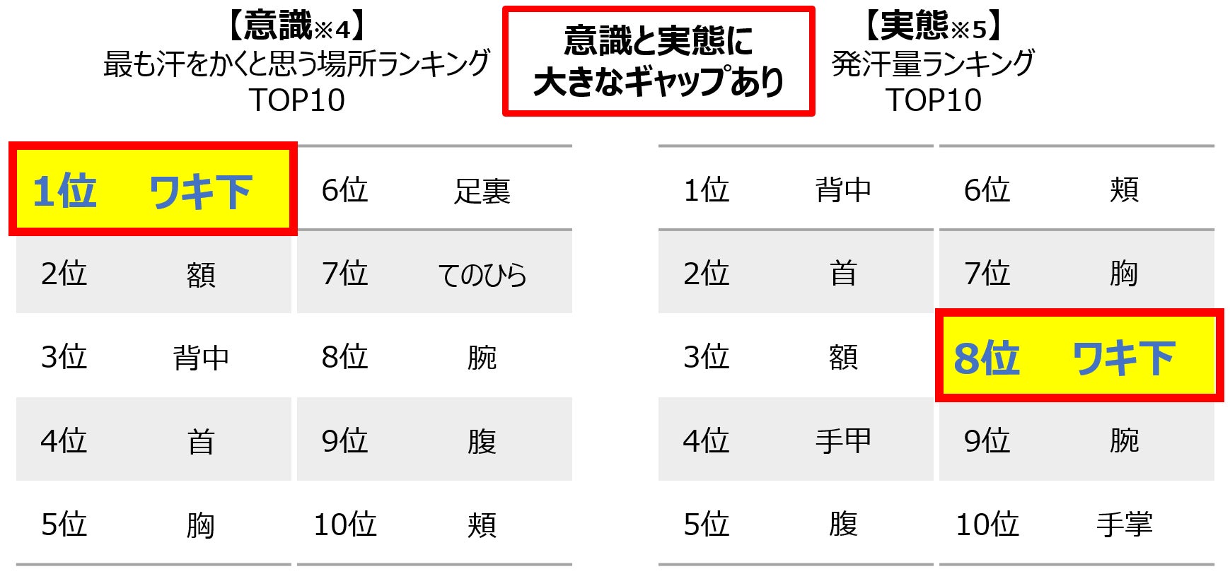 - 新事実!実は発汗量はワキよりも背中や首のほうが多いことが判明!生活者が最も汗をかくと思う場所と実態にギャップあり!ニオイは全身から出ているので全身のボディケアを
