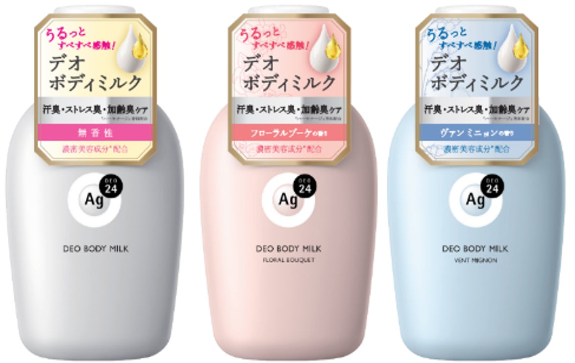 “うるっとすべすべ感触の贅沢ミルク” で汗臭・ストレス臭・加齢臭まで全身トータルケア「エージーデオ24 デオボディミルク(3種)」1月下旬、新発売!