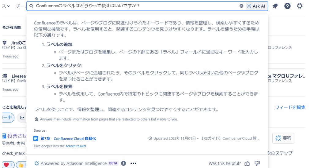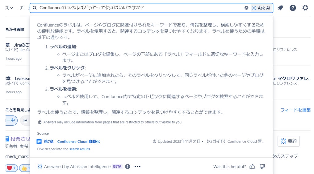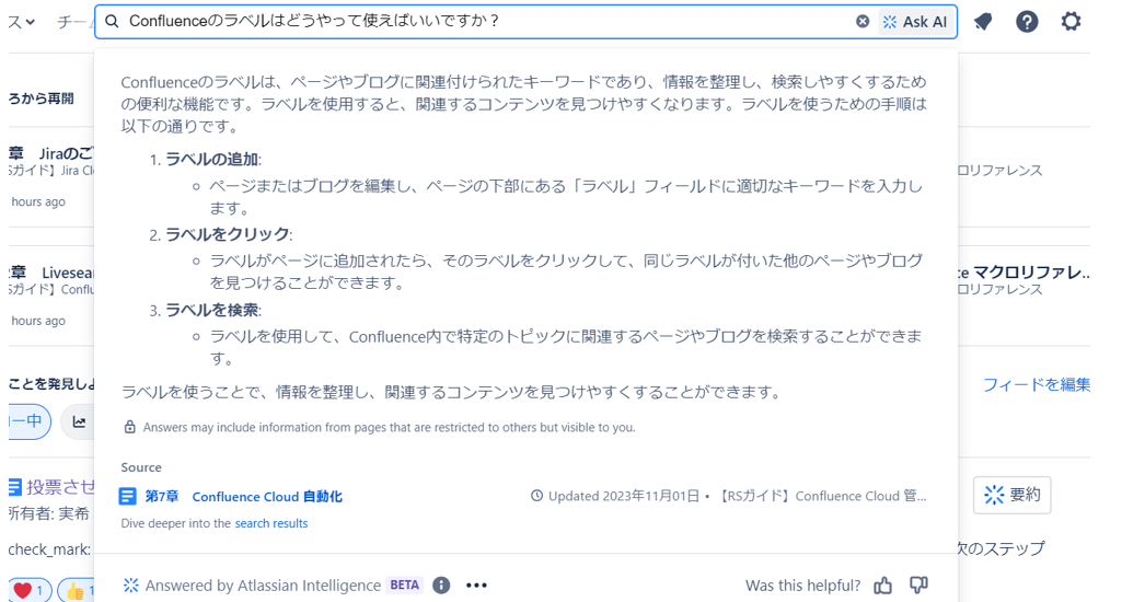 ConfluenceのAI回答機能との連携で、ナレッジの利活用を促進
