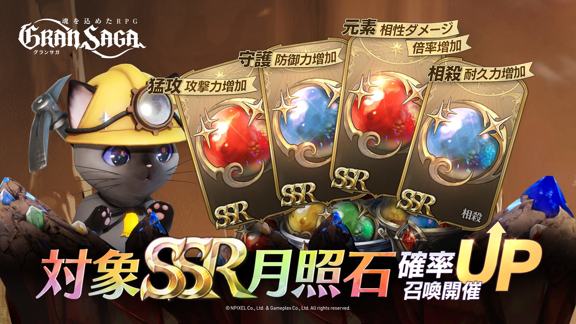 なお、確率UP対象となる月照石については、ゲーム内のおしらせ、又は公式サイトのお知らせページ( https://forum.gransaga.jp/#/list/0/1 )をご覧ください。