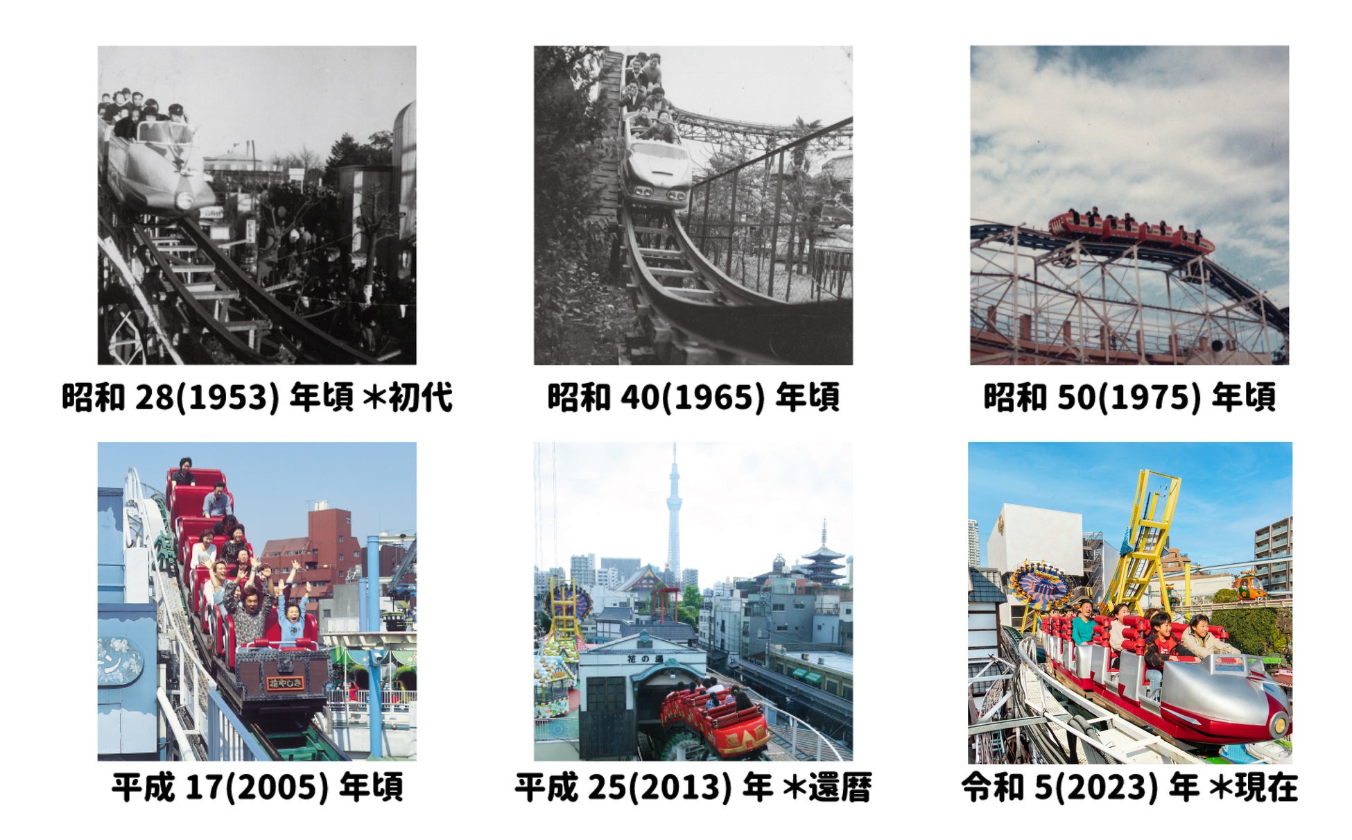 1953年(昭和28年)に誕生した「ローラーコースター」(当時はロケットコースター)は各年代で姿を変えて走り続けてきました。今後も日本現存最古のローラーコースターとして走り続けます。