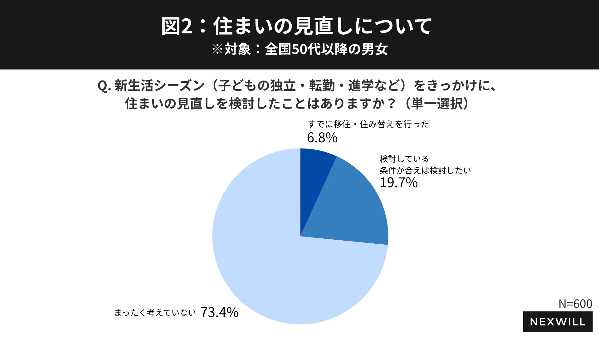 実家じまいなど相続に伴う不動産課題を”ワンストップで対応”する訳あり不動産買取事業「ワケガイ」を展開する株式会社ネクスウィル(本社:東京都港区新橋 代表取締役:丸岡 智幸)は、全国の60歳以上の男女600名を対象に、新生活シーズンにおける移住・住み替えに関する実態調査を実施しました。