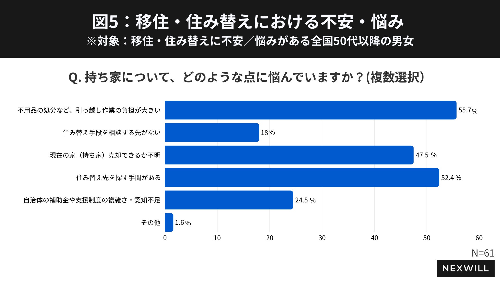 住み替えに対する不安は単なる心理的な問題にとどまらず、「作業負担」「資産処理」「情報不足」といった複数の課題が複雑に絡み合うことで、検討したいが動けていない状況を生み出していることが明らかになりました。