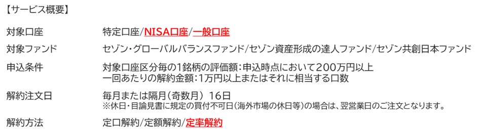 セゾン投信株式会社(代表取締役社長:園部鷹博、本社:東京都豊島区、以下 「セゾン投信」)は、定期換金サービス(セゾン定期便)のメニューに「定率解約」を追加し、対象となる口座区分も拡充いたしました。