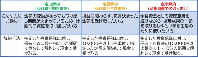 定期換金サービスの魅力 「定額解約」、「定口解約」と3パターンから選べるように。