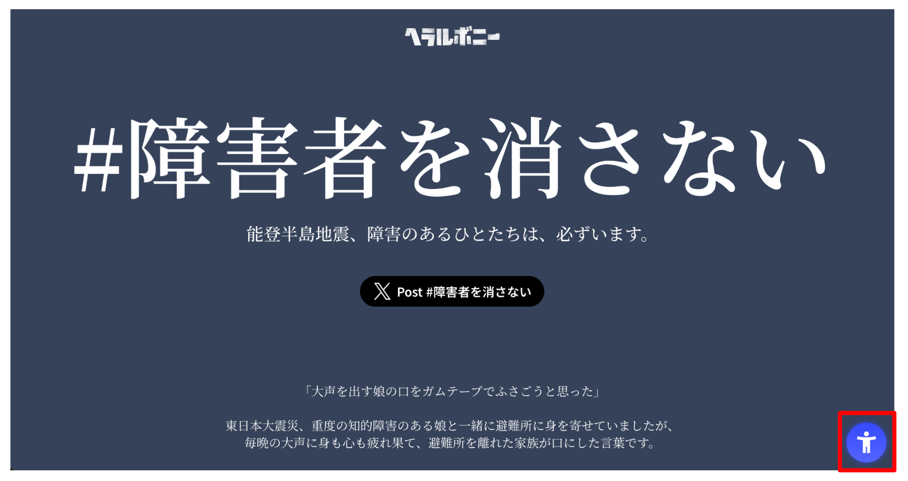 能登半島地震、今現在この瞬間も、障害のある人は生活環境の変化により、大きく混乱をしているはずです。「#障害者を消さない」は、ありのままの存在そのものが尊重されること。やさしい情報づくりは、やさしい社会の土台をつくることに繋がるのです。今まで届かなかったマイノリティ側の声が1人でも多くの人へ伝わりますように。