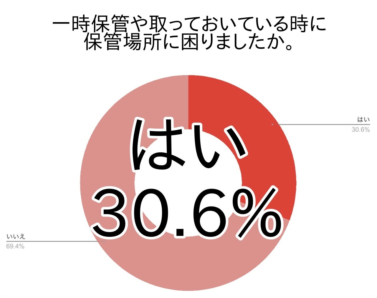 さらに、一時保管の経験がある場合や取っておいている方に、保管場所に困ったかどうかを尋ねました。