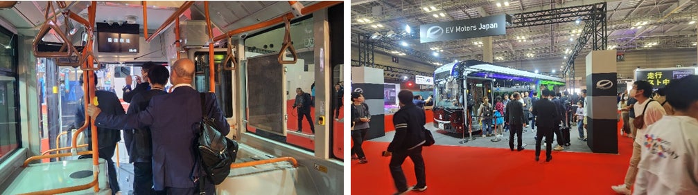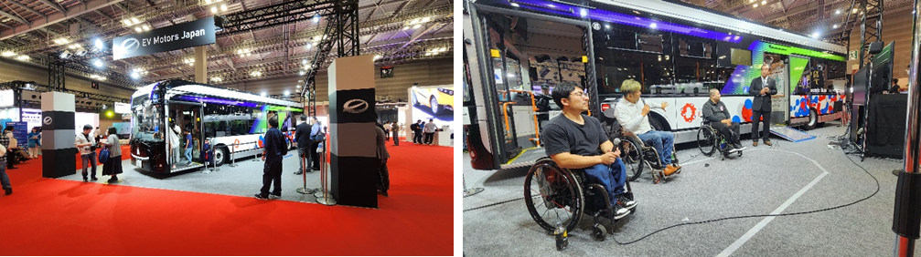 株式会社 EV モーターズ・ジャパン (本社:福岡県北九州市、代表:佐藤 裕之) はこの度、10月25日(一般公開は10月28日より)から東京ビッグサイトにて開催された「Japan Mobility Show 2023」へ大阪・関西万博仕様の大型EV路線バスの展示、及び新型SiCアクティブ・インバータやエネルギーマネジメントシステムの新技術を発表いたしました。