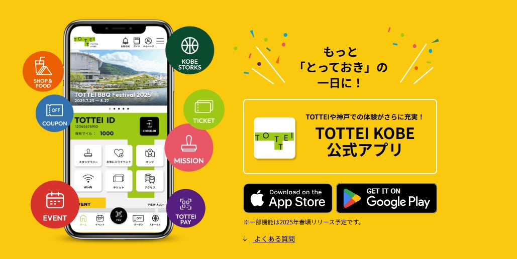 そのほか、100日前を記念して「GLION ARENA KOBE」や「TOTTEI PARK」の開業前ならではのお楽しみ情報を発信する公式SNS(X、Instagram)や「TOTTEI KOBE 公式アプリ」α版の公開を開始します。今年のクリスマスはTOTTEI開業100日前の「今だけ、神戸ならでは」を体感・共有するイベントをたくさんご用意し、神戸ウォーターフロントのクリスマスを盛り上げます。