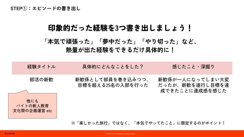 人生の中で“気がついたら熱中していたこと”をそれぞれ3つ書き出し、さらにその経験は具体的に何をしてどのような結果が出たのかを整理していきました。