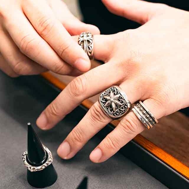 ブランドの最大の特徴は、シルバー925を中心とした素材を用いた手作業による繊細な彫金加工と、ゴシックデザインを基調とした独自のスタイルです。大量生産ではなく、熟練した職人が一つひとつ丁寧に作り上げるアクセサリーは、芸術品と呼ぶにふさわしい高い完成度を誇ります。