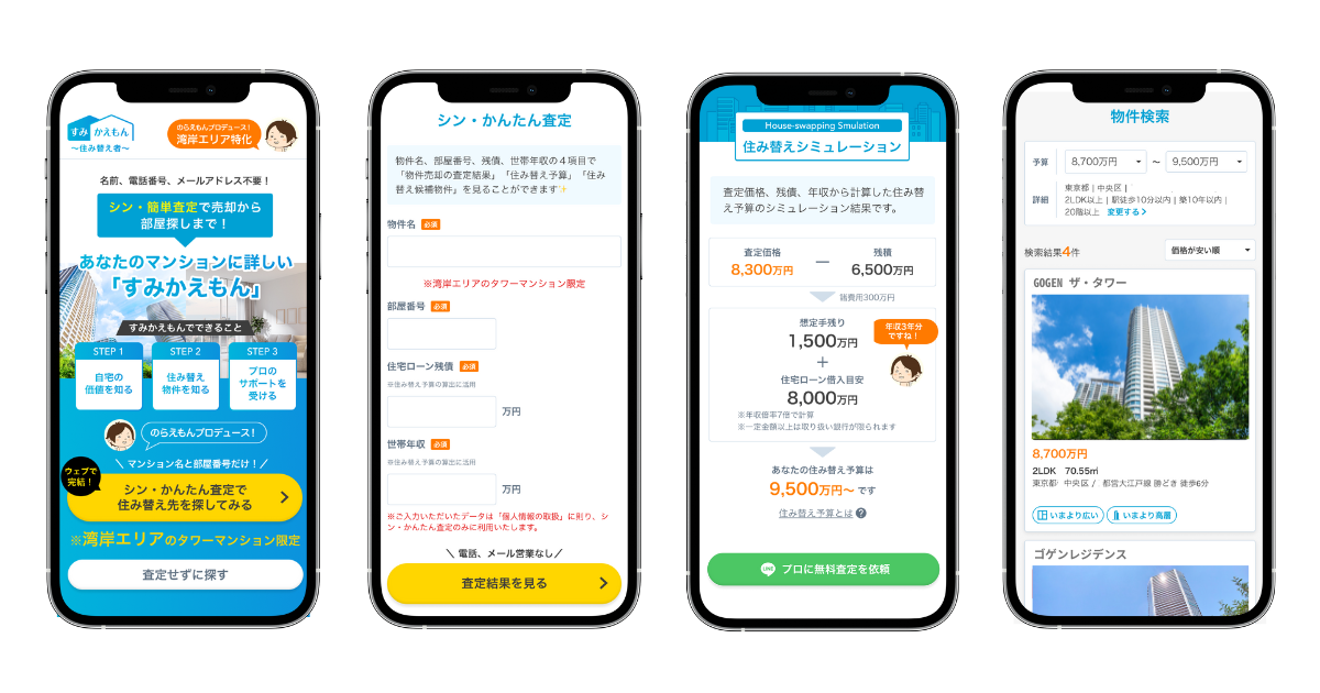 このような背景から、今後の湾岸エリアでの住み替え需要とデータ活用による売買取引の活性化を見据えて、「すみかえもん」を開発・提供を開始いたしました。当社のミッションである「あたらしいやり方で、人々によりよい不動産を」の実現のため、今後も不動産売買の新しい価値提供を推進してまいります。