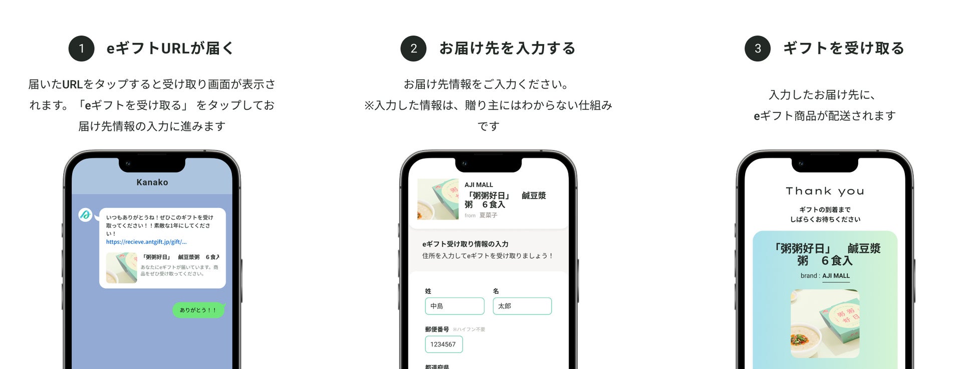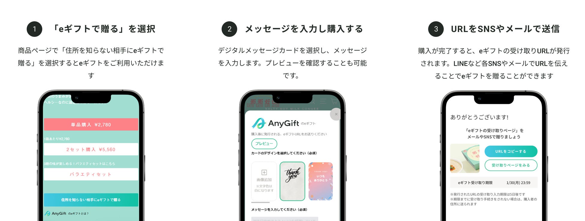 eギフトURLから住所を入力いただくだけで対象商品が届きます