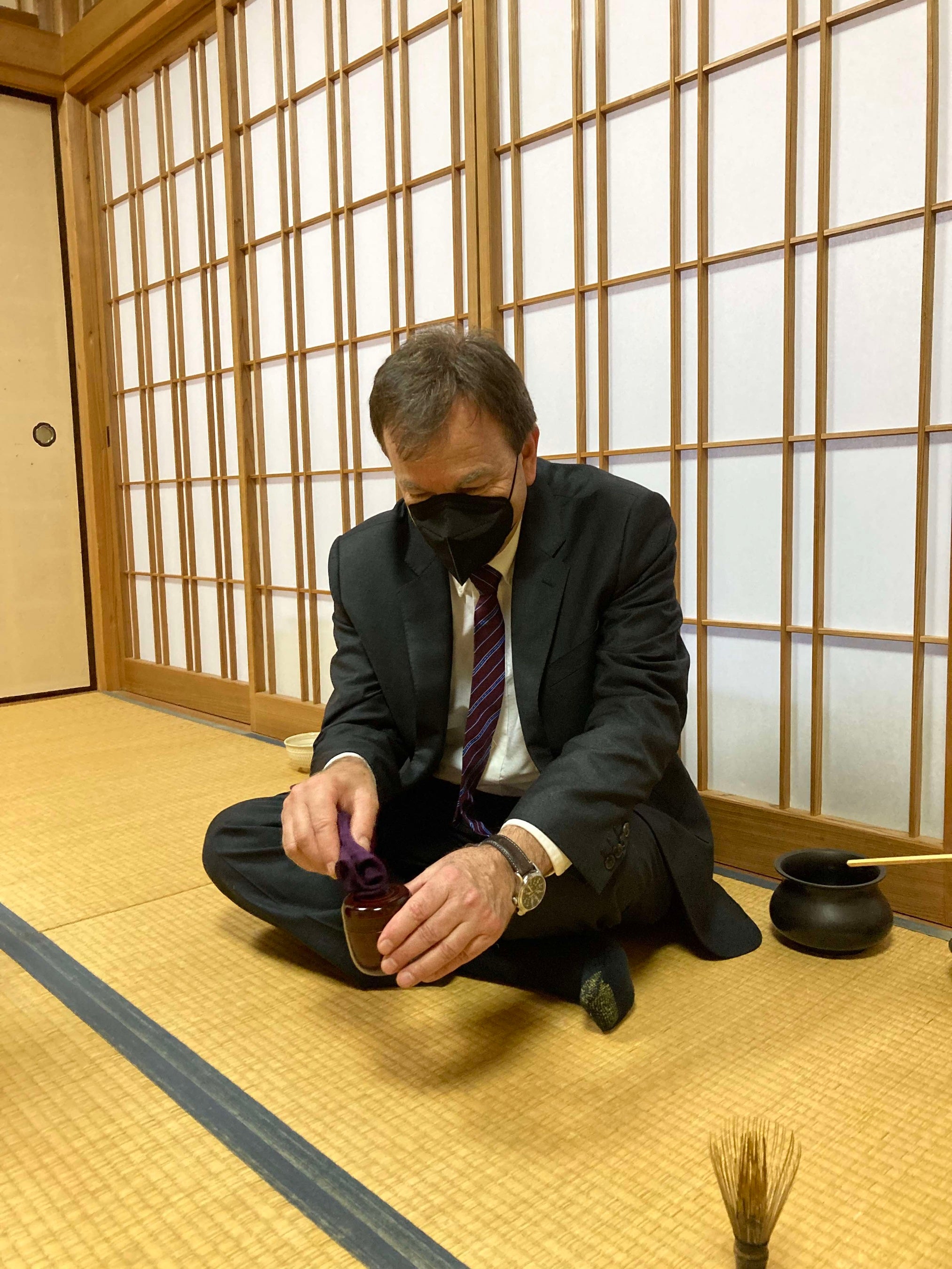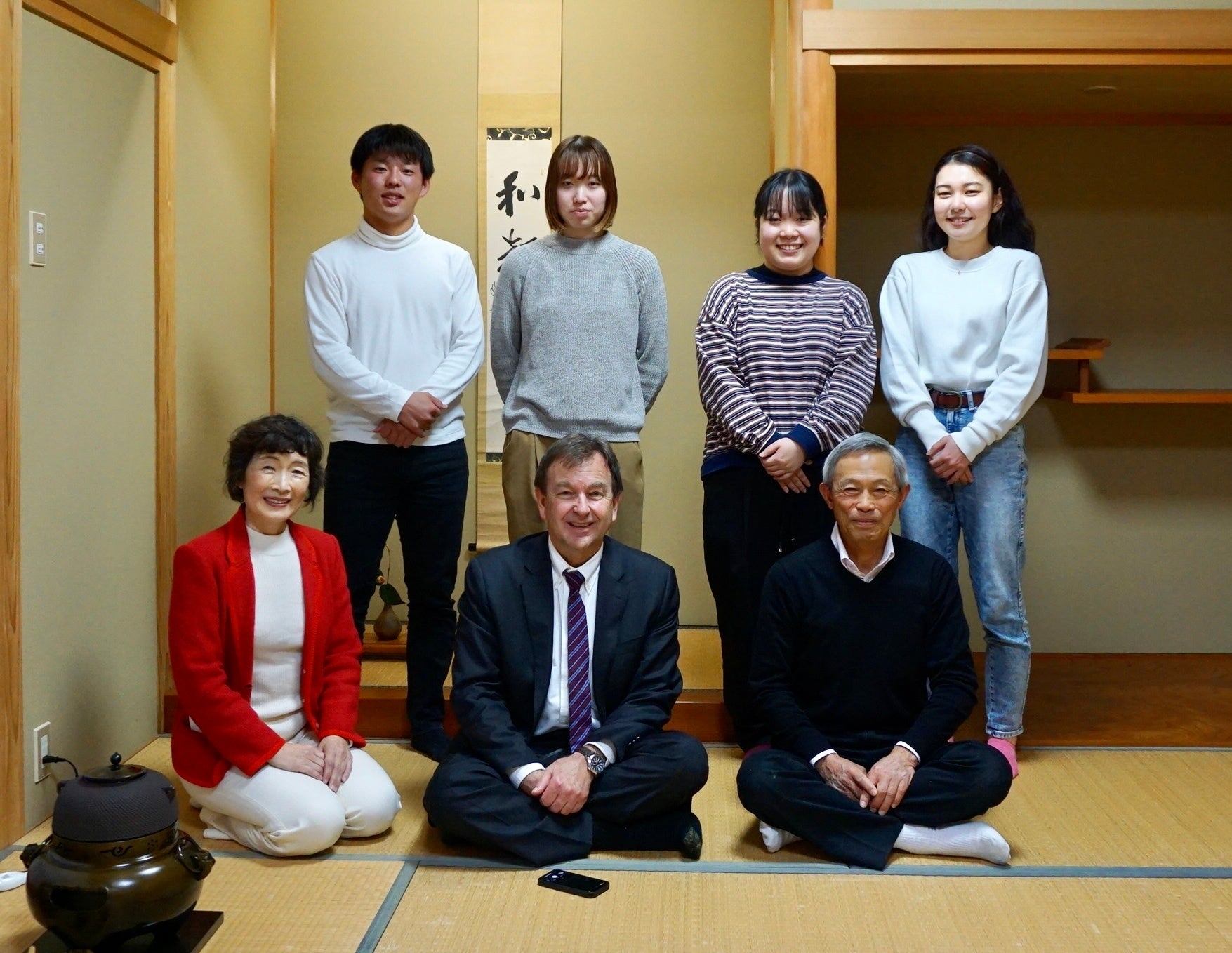 2022年12⽉13⽇、アメリカの交流協定校であるセントラルワシントン⼤学(CWU)のマット・ブ リッチギー語学学校校⻑先⽣の島根県立大学来訪に合わせ、学⽣と一緒に茶道を体験し、⼼が通じるひと時を過ごしました。