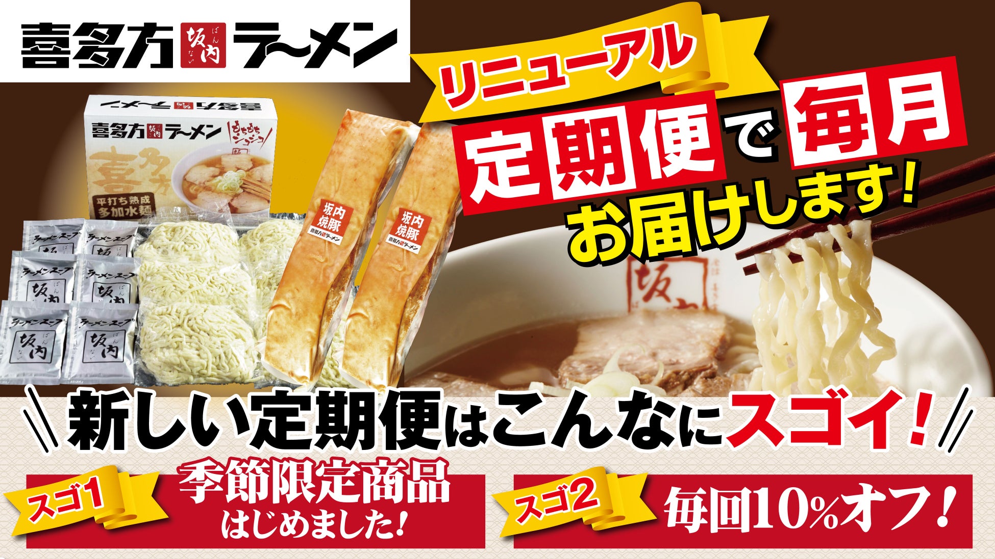 長:中原 誠)は、「喜多方ラーメン坂内 公式オンラインショップ」でご提供している「定期お届け便」