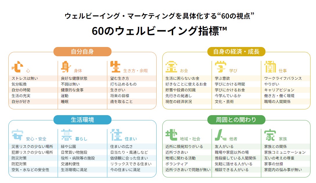 ■「60のウェルビーイング指標™」は、“よりよく生きる”を考える60の視点
