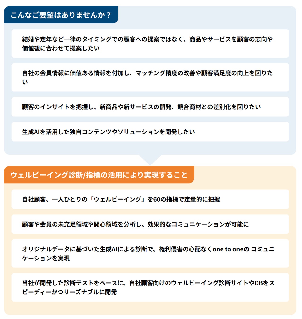 自社調査による「独自の60のウェルビーイング指標」と「生成AI」で実現