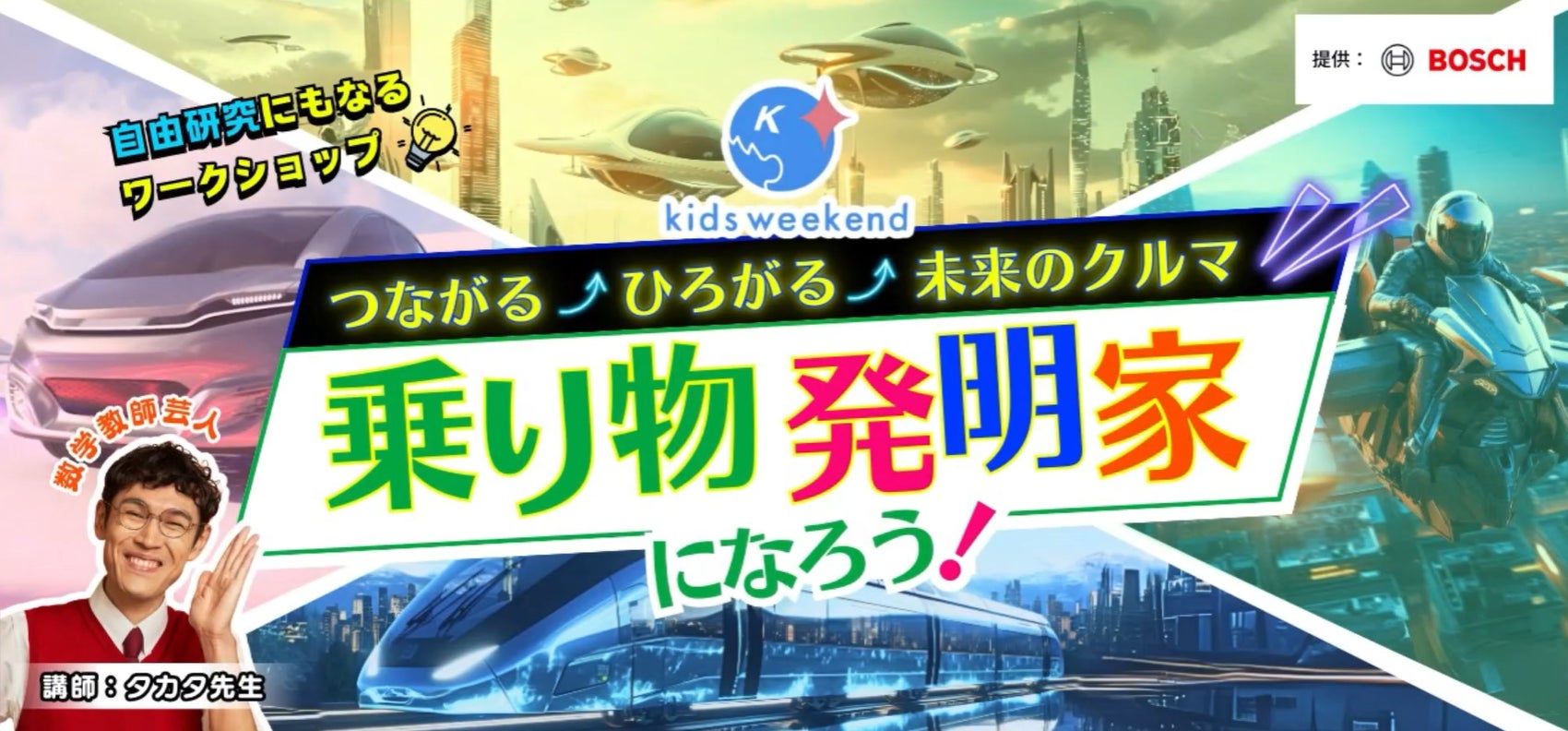 日本最大級の子ども向け『教育×オンライン』プラットフォームを展開するキッズウィークエンド株式会社(本社:東京都中央区、代表取締役兼CEO:三浦里江、以下キッズウィークエンド)は、国家戦略特区*に指定されている愛媛県今治市で2025年2月22日に開催された「しまなみ近未来フェア~次世代モビリティ展~」にて、ボッシュ株式会社とともにモビリティの未来を創造する親子向けイベント「つながる、ひろがる、未来のクルマ★乗り物発明家になろう!」を開催いたしました。