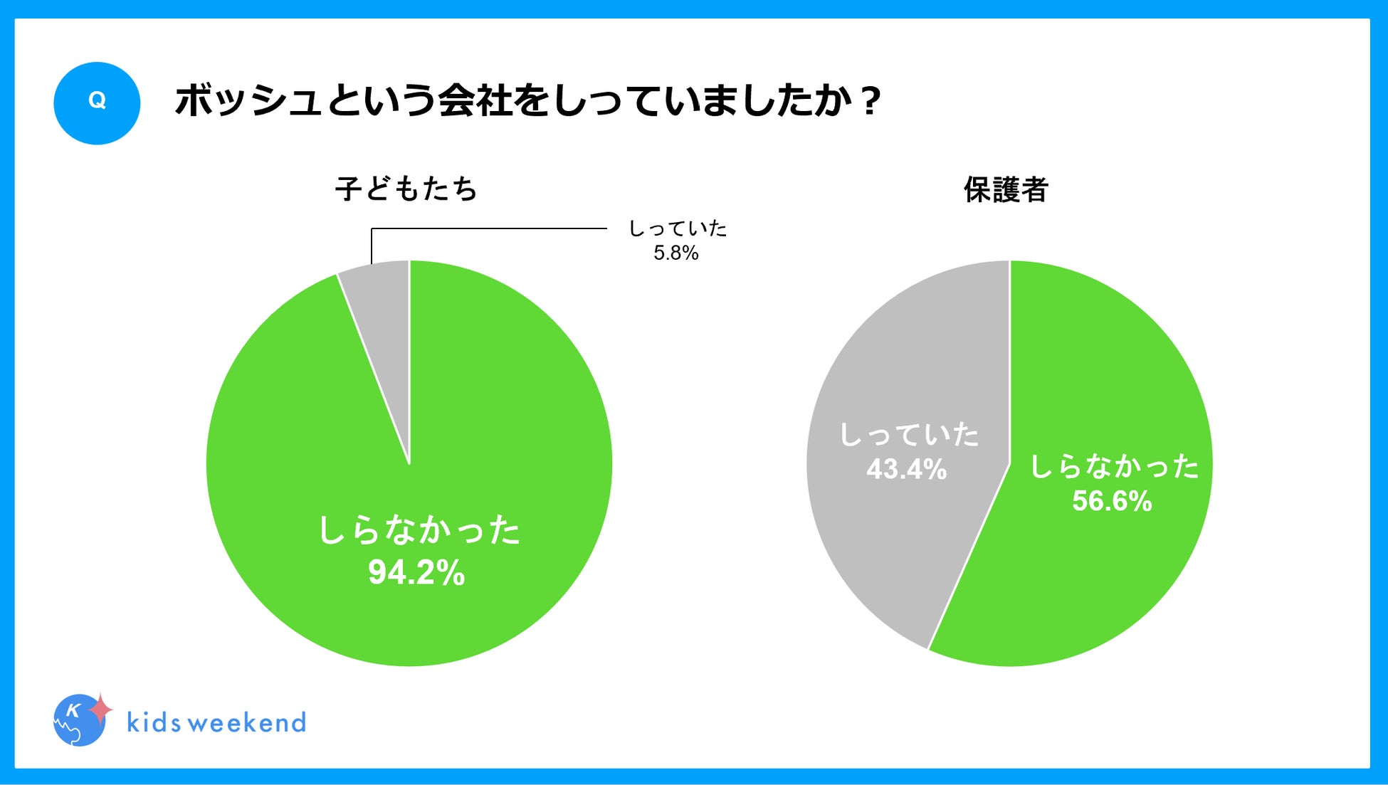 子どもは9割以上が、保護者は過半数が知らなかったと回答。「ボッシュについて名前は知っていたがこんなに大きく世界的な企業とは知らなかった」といった意見もあり、イベントを通じて企業への関心も高まったことが伺えました。