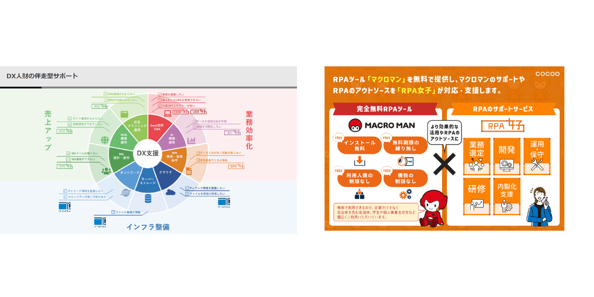 今後の日本社会において少子高齢化は大きな課題であり、2030年までには労働需給ギャップが644万人になると予測している調査もあります。このギャップを埋めて日本が元気になっていくためには、大きく「人財」と「デジタル」の2つの要素があると考えられます。コクー社の提供するRPAツール「マクロマン」は、ツール利用料が完全無料のRPAツールで、必要な時だけのサポート費用でコストカットを実現できます。日々、パソコンの繰り返し作業に追われている方の業務自動化はもちろん、運用に不安を抱えていた企業様にも満足いただいている安心のサポート体制も完備しており、多くの引き合いがあります。