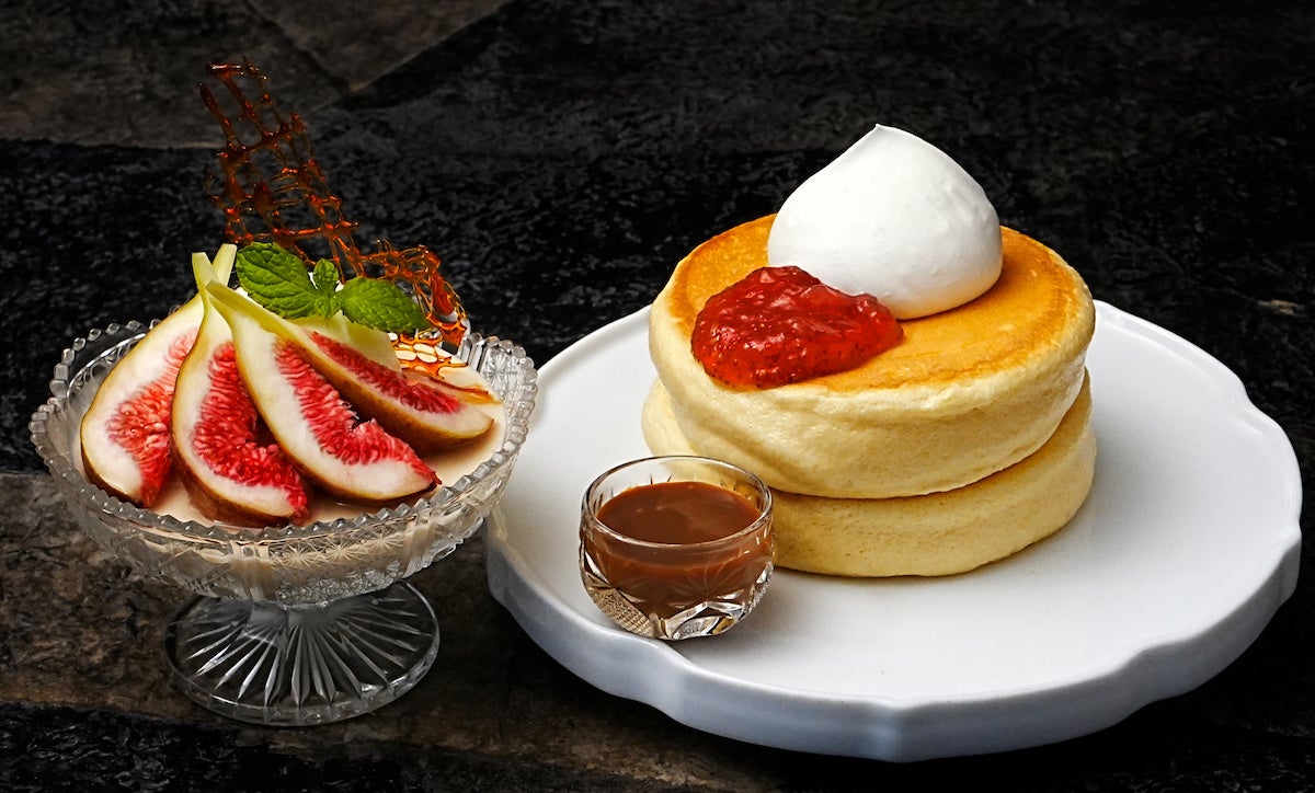 今回期間限定商品となる「北海道ほっとけーき いちじくと北海道キャラメル」は、椿サロン銀座店の限定商品です。こだわりの無添加ぷるぷるほっとけーきに、夏から秋にかけて旬の瑞々しいいちじくを使用した、今だけの贅沢な一品です。