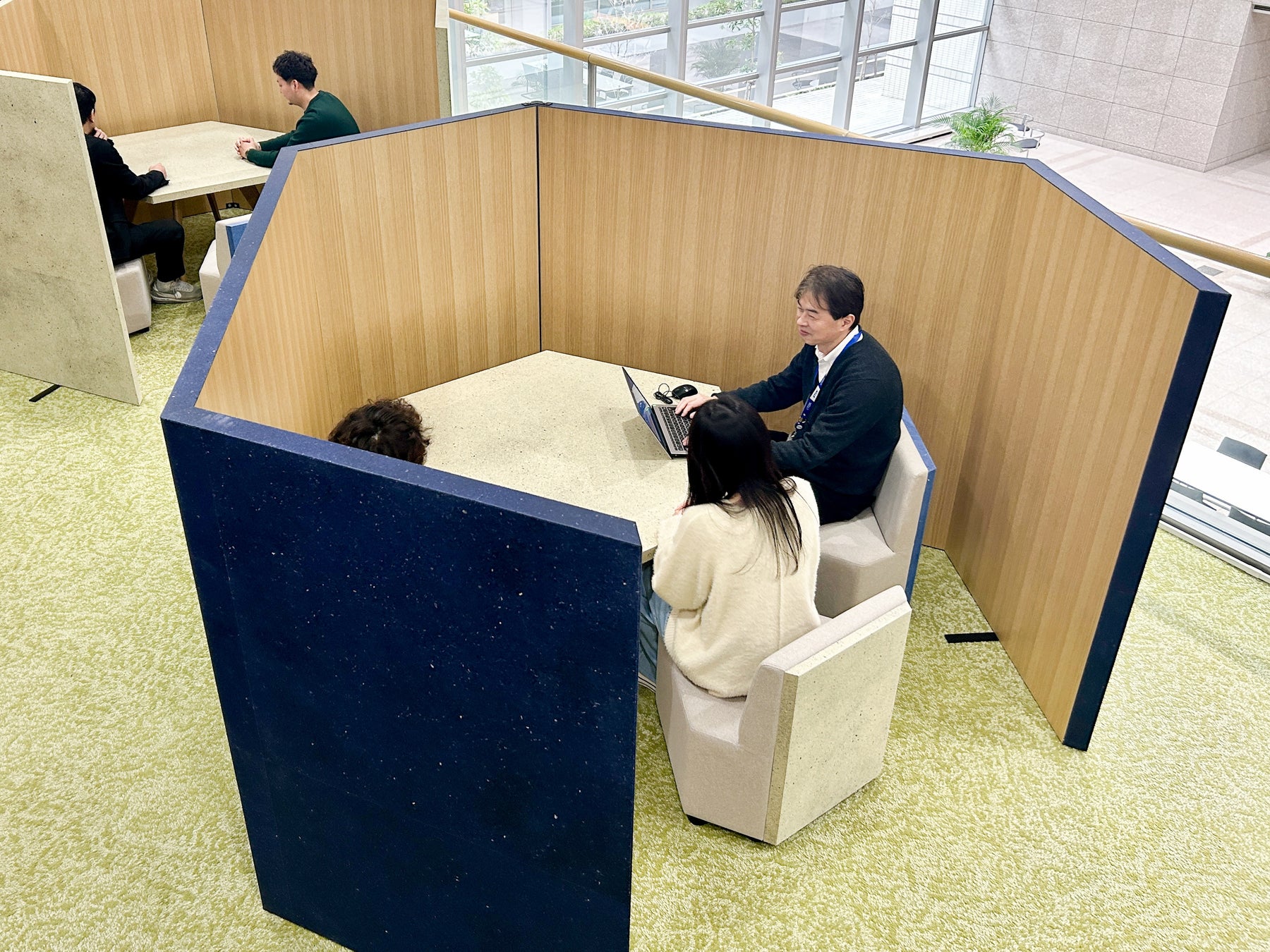 TDK株式会社では、使用済みユニフォームの一部をカフェスペースやワークスペースで使用するテーブル・イス・パーテーションにアップサイクルし、TDKテクニカルセンター(千葉県市川市)に導入しました。
