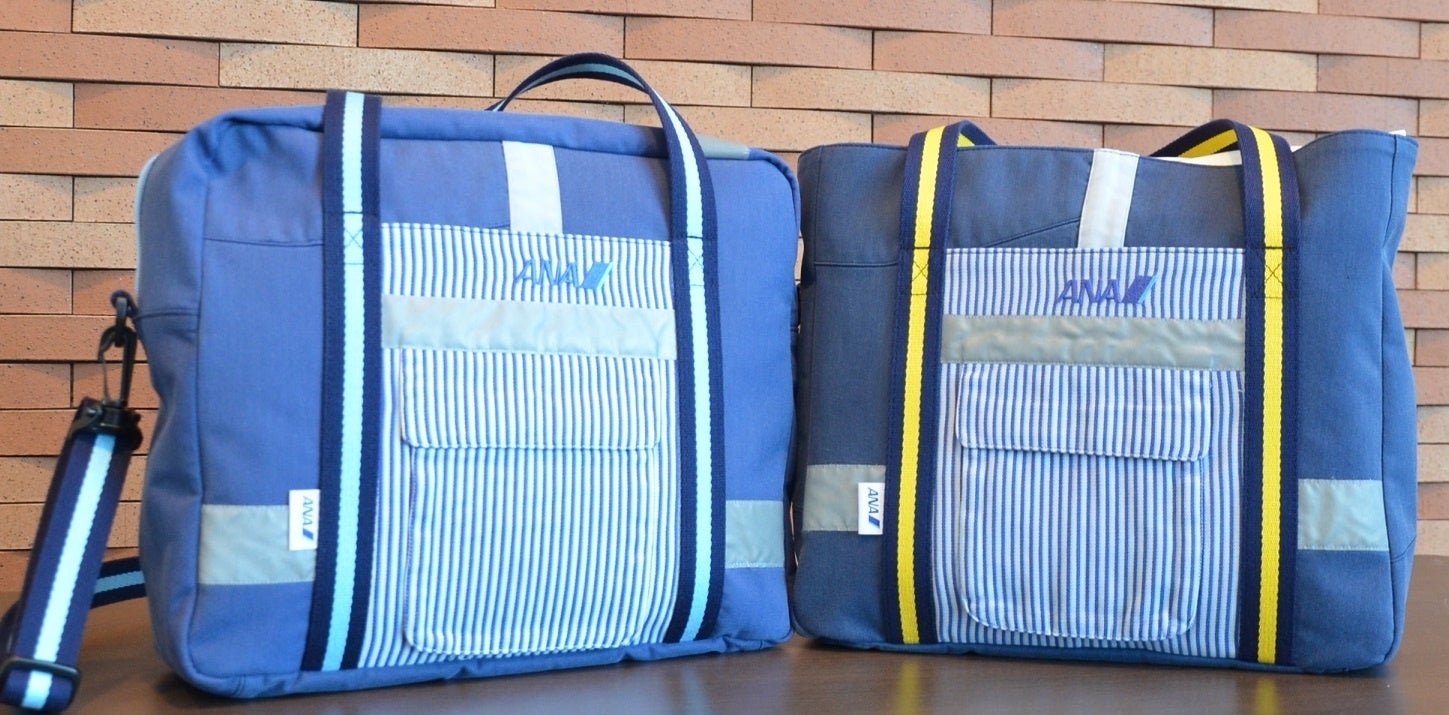 ANAあきんど株式会社、北海道月形町、月形刑務所、北海道月形高等学校との取り組みでは、貨物の搭降載や誘導などを行うANAグランドスタッフの使用済みユニフォームを、キャリーオンバッグとトートバッグにアップサイクルしました。当社は、製品仕様書の作成とアドバイザーを担当しました。
