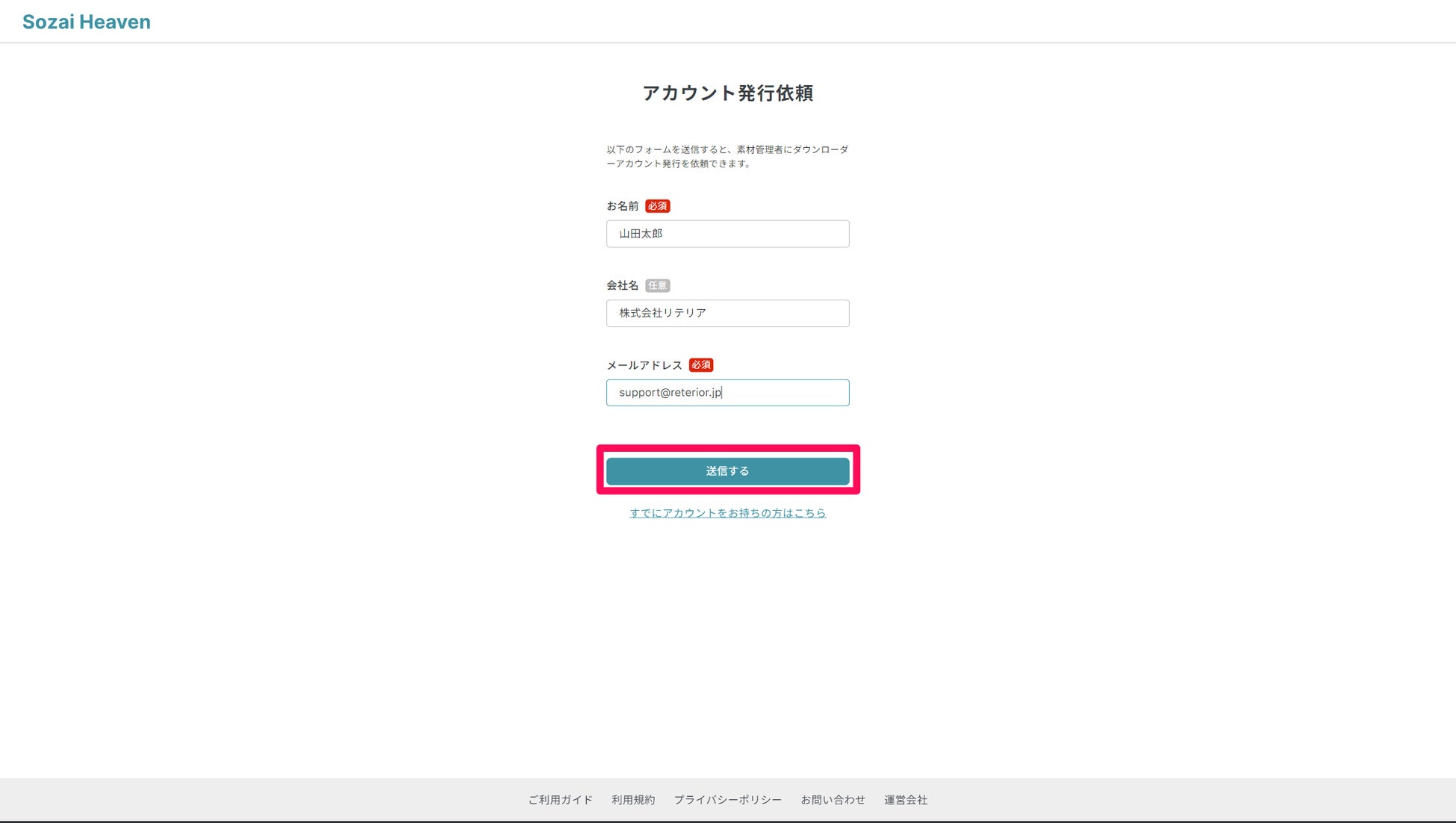 ダウンローダーアカウントを持っていないユーザーがダウンロードサイト上からアカウントの発行依頼機能を使用すると、素材管理者に対してメールが送信されます。素材管理者がメールのリンクから素材ヘブンにアクセスすることで今まで以上にスムーズなアカウント発行ができるようになります。SNSやLINEなどで連絡する一手間を解決できる機能です。