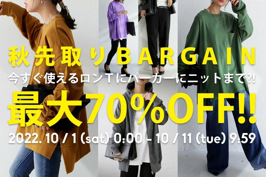 「ANTIQUA AW先取りバーゲン」では、これからの季節に活躍間違いなしの、ロンTにパーカー、ニットといった人気の商品が季節に先取りして最大70%OFF(メンズは最大50%OFF)で買える10日間限定のバーゲンです。
