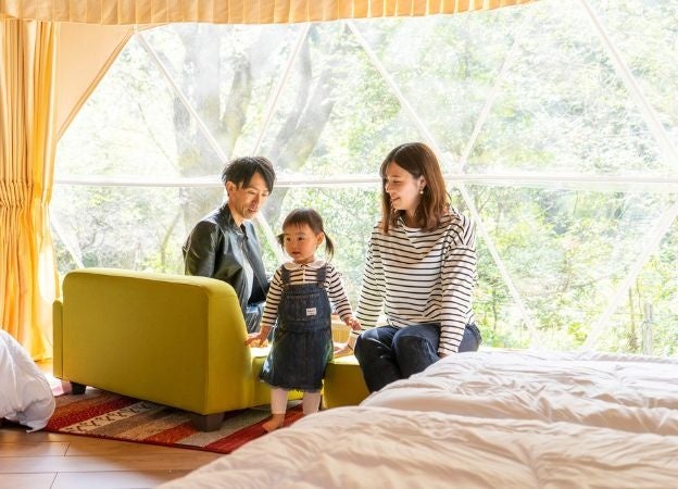 【glampark 四季荘の魅力①家族、カップルでも安心ゆったり空間のグランピングドーム】