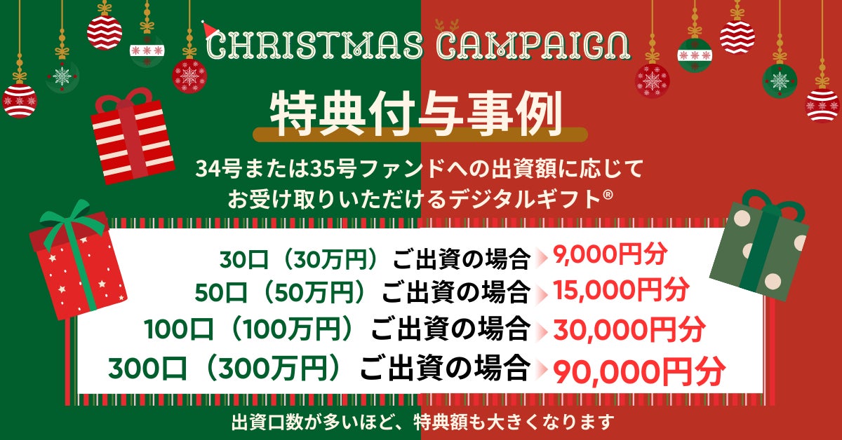 ※ 特典の付与期日は当該ファンドの運用開始後1ヶ月以内を予定しております。