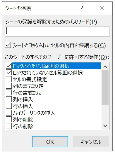 行の挿入、オートフィルターの使用など細かい機能制限をシート単位にかける際に設定するパスワードです。