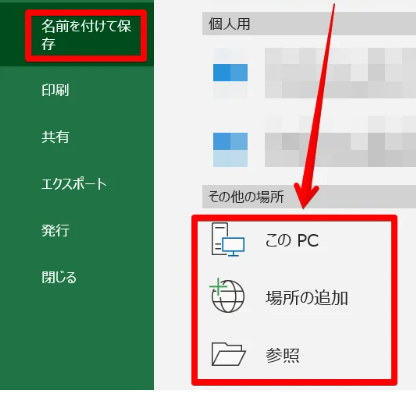 Step2:「名前を付けて保存」を選択後、保存先をクリックします。