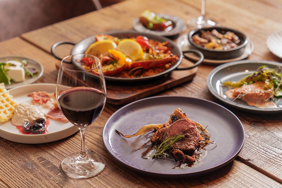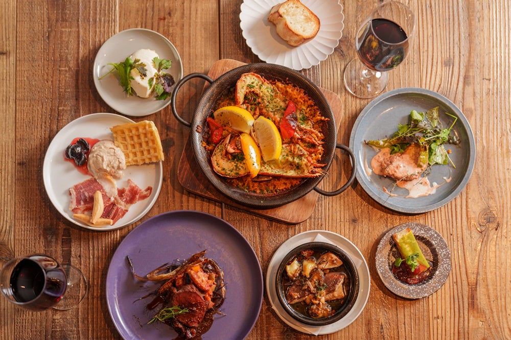 2023年のクリスマスディナーでは、活オマール海老を丸ごと一本使用したパエリアをはじめ、キャビアやフォアグラ、白子、鮑、白アマダイなどの豪華食材を盛り込みました。九州産の黒毛和牛や糸島の野菜、福岡県産のあまおう苺など、地元の食材を組み合わせたクリスマス限定のコースをお楽しみください。