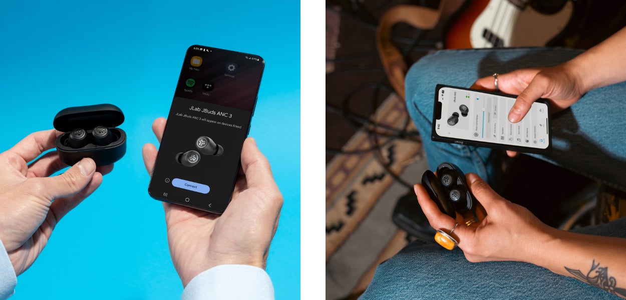JLabアプリで、スマートアクティブノイズキャンセリング機能、タッチコントロール、カスタムイコライザー設定などを調整することができます。アプリはApp StoreもしくはGoogle Playから入手できます。