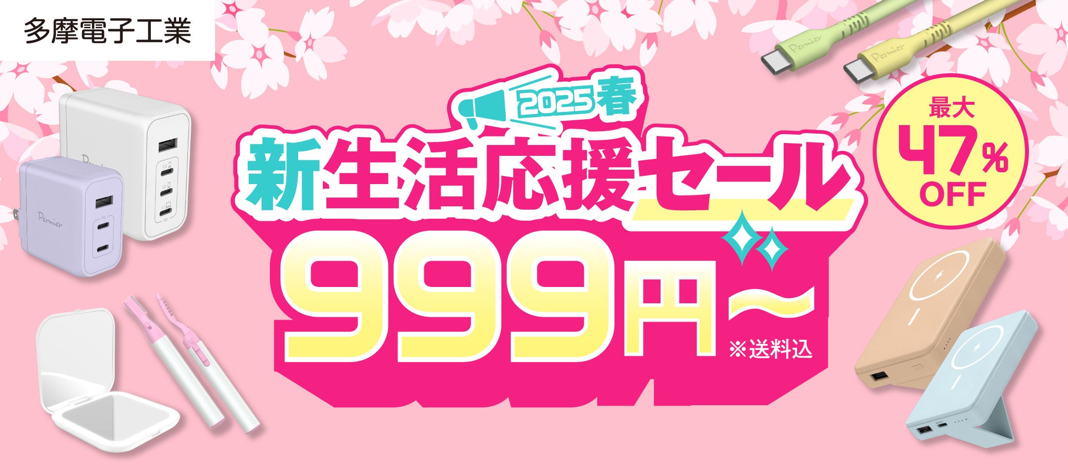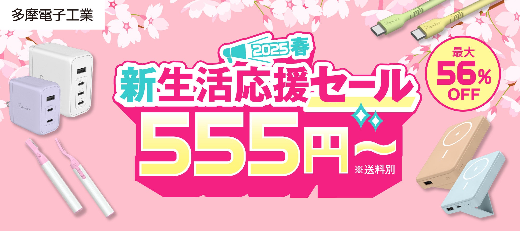 多摩電子工業株式会社(本社:神奈川県川崎市)は、2025年2月25日(火)11:00から4月25日(金)23:59まで、ECサイトにて「春の新生活応援セール」を開催、人気のスマートフォン用ケーブル、美容グッズなど、これからの新生活に欠かせない商品を最大56%OFFにてご提供いたします。