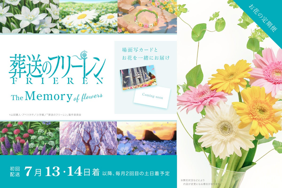 【narrative株式会社】5月15日より予約受付開始!!フリーレンが旅をする中で出逢った美しい花や、師から受け継いだ花畑を出す魔法などを、花束として貴方のご自宅にお届けします!!