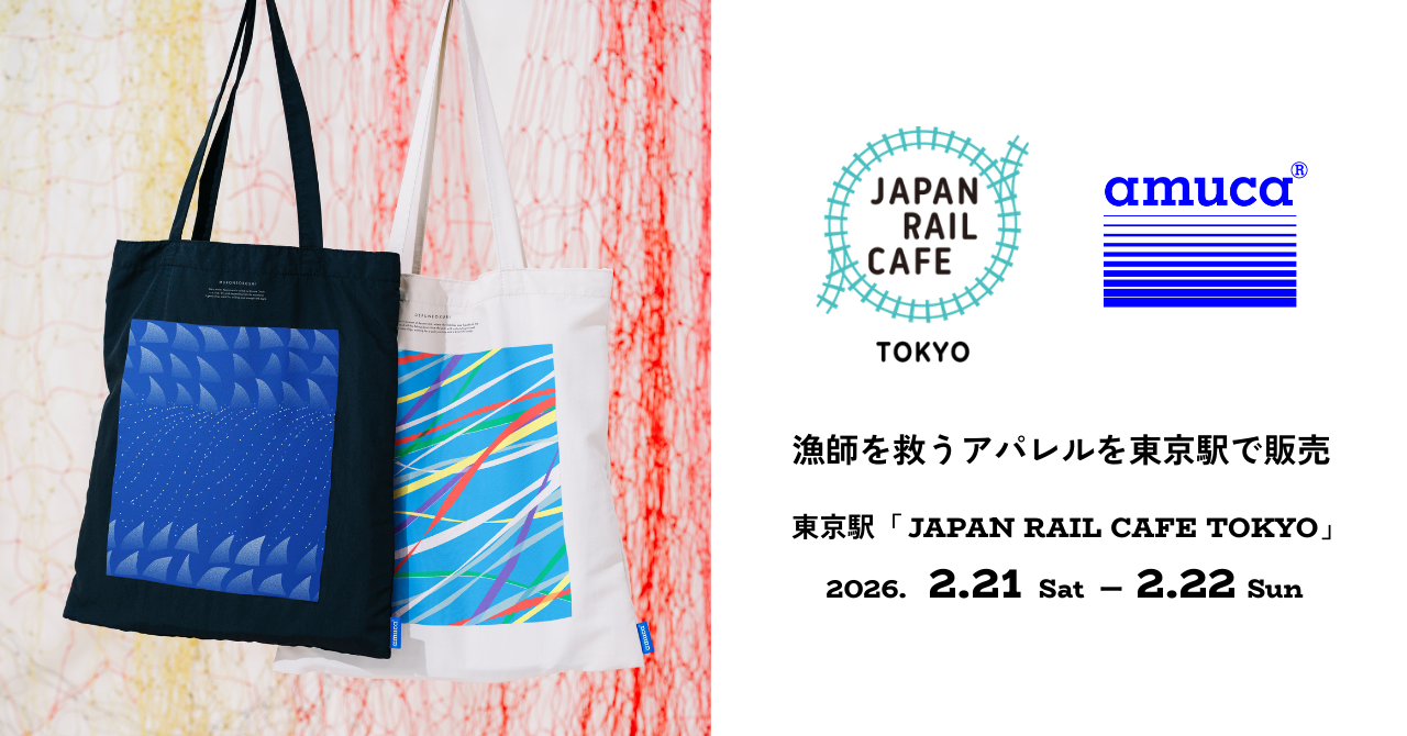 amu株式会社(本社:宮城県気仙沼市、代表取締役CEO:加藤広大、以下amu)は、2026年2月21日~22日、東京駅「JAPAN RAIL CAFE TOKYO」にて、廃漁具由来素材「amucaⓇ(アムカ)」を使用したアパレル製品等を販売します。