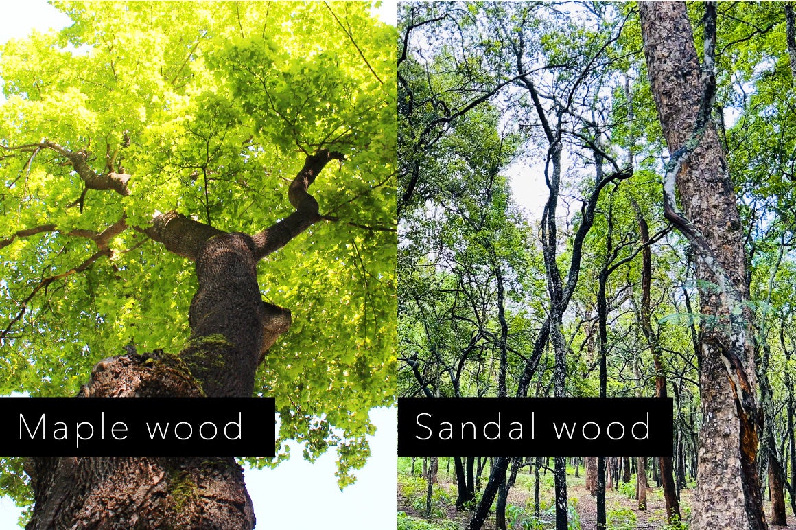 白っぽい清潔感のある色合いのメープルウッドは、バイオリンなどに使用されており、抗炎症作用や抗酸化 作用があると言われています。