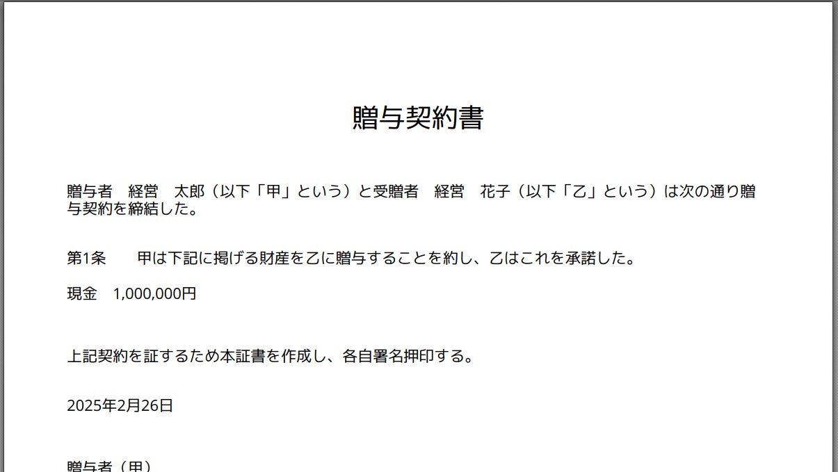 贈与の際に契約書が必要なら「贈与契約書のひな形」ツール